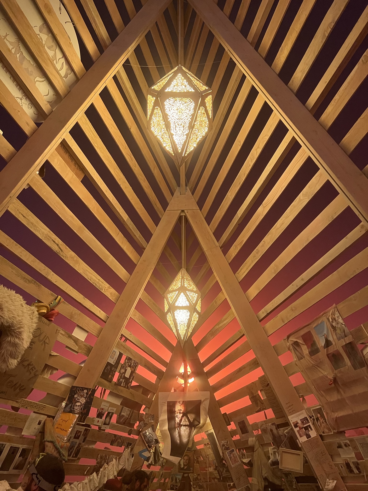 This year I had the pleasure of designing these lanternes that hung in the temple. We made a 5f, 4ft,3ft and an 18inch smaller version that was seated in an alter. These drawings were conceptualized and developed overtime with the team at Abra colab. I would finalize the process by doing layout and blending together with abstract movement.